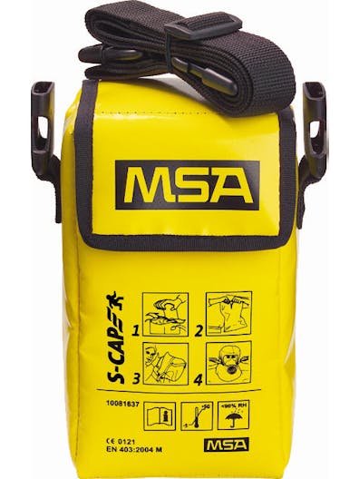 Solid Zarges kasse med 20 stk MSA S-Cap rømningsmasker