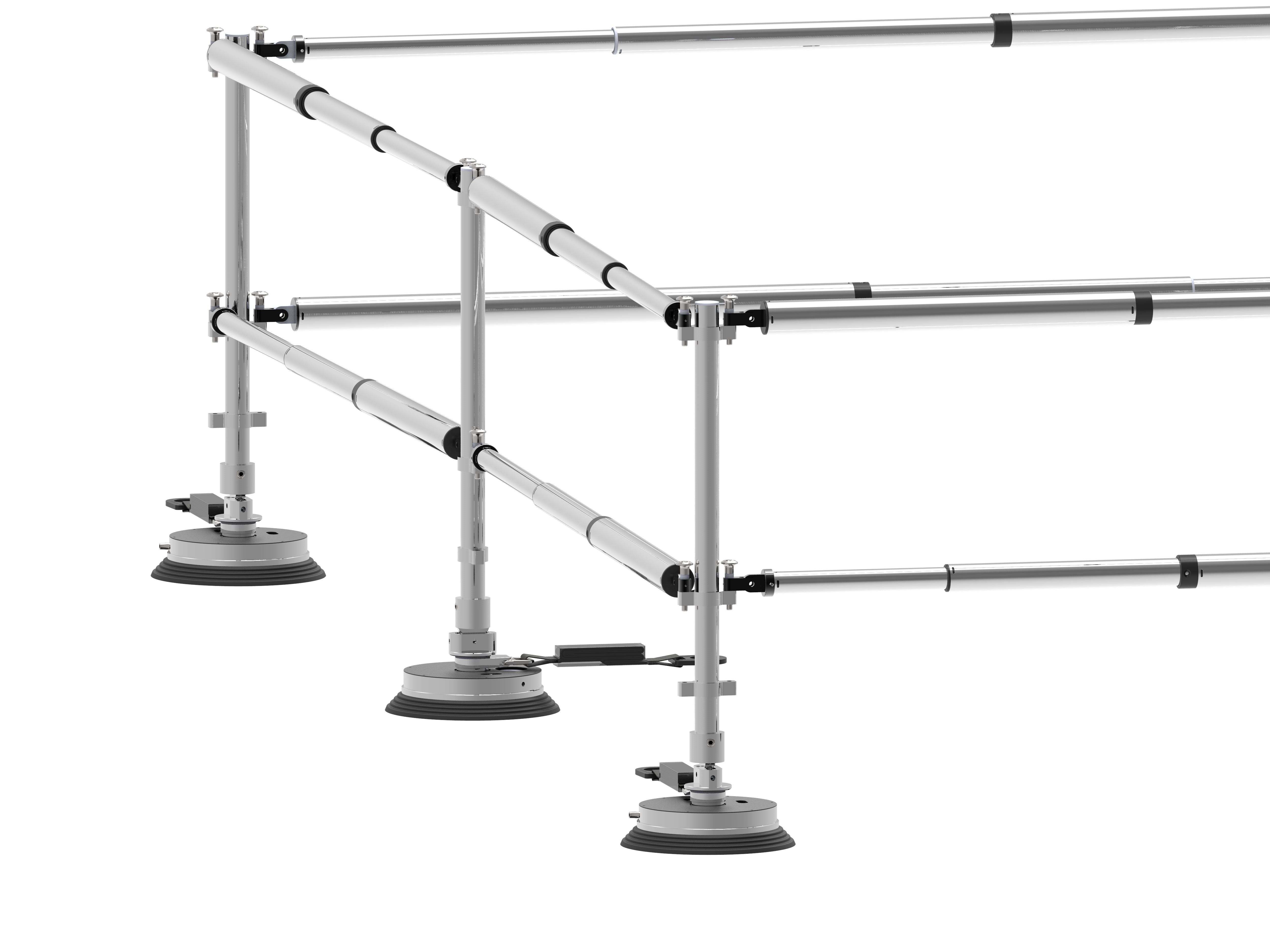 Flere WinGrip vakuumankere plassert på linje og kombinert med WinGrip Multi-User kabelsystem kan brukes til å skape et trygt arbeidsmiljø for opptil fire personer.