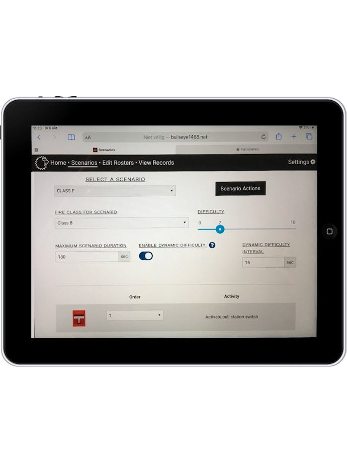 Programvare for å lage egne scenarier, inkludert justering av maksimal varighet, effektiviteten til slukkeren og innstilling for dynamisk vanskelighetsgrad.